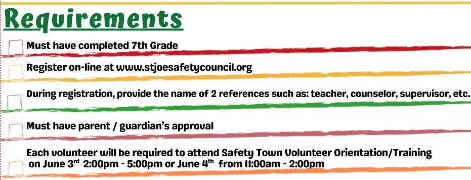 If you're ready to help young children learn safety skills while gaining valuable experience, register by May 1st at www.stjoesafetycouncil.org or call 816‑233‑3330.